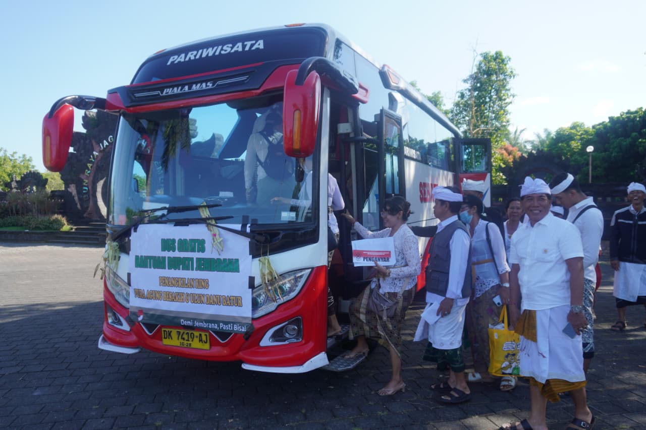 Jembrana – Mendukung kelancaran umat serta meringankan beban transportasi Masyarakat pemedek yang hendak tangkil pada upacara Karya agung di Pura Besakih (Ida Bhatara Turun Kabeh) dan Pura Ulun Danu Batur (Ngusaba Kedasa) tahun 2026 , Bupati Jembrana I Made Kembang Hartawan secara pribadi menyediakan layanan bus gratis.