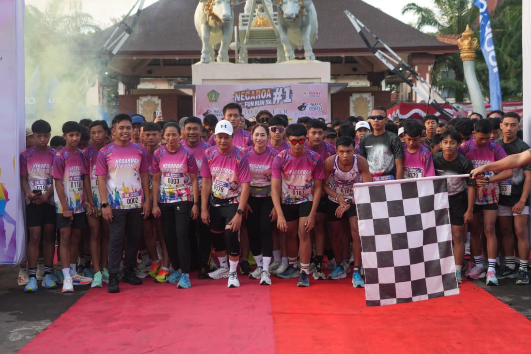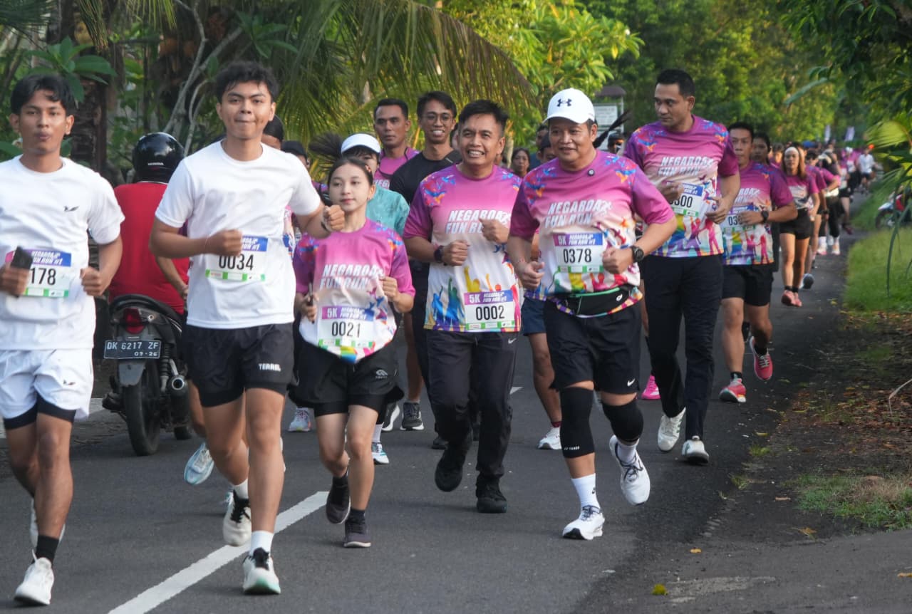 Jembrana – Bupati Jembrana, I Made Kembang Hartawan bersama Wakil Bupati Jembrana, I Gede Ngurah Patriana Krisna (Ipat), turut ambil bagian dalam ajang Negaroa Fun Run yang digelar pada Minggu (7/12/2025).  Kegiatan lari santai ini mengambil start di Gedung Kesenian Soekarno dan menempuh jarak 5 kilometer.