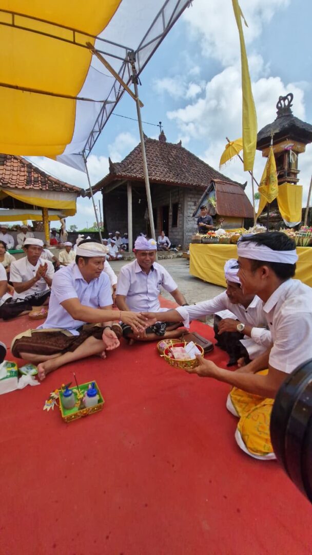 JEMBRANA – Bupati Kembang Hartawan menghadiri prosesi persembahyangan bersama krama subak di Pura Ulunsuwi Taman Sari, Subak Benel, pada Minggu (15/3/2026). Kehadiran Bupati ini disambut hangat oleh masyarakat sebagai bentuk kedekatan pemimpin dengan sektor pertanian yang menjadi tulang punggung ekonomi daerah.