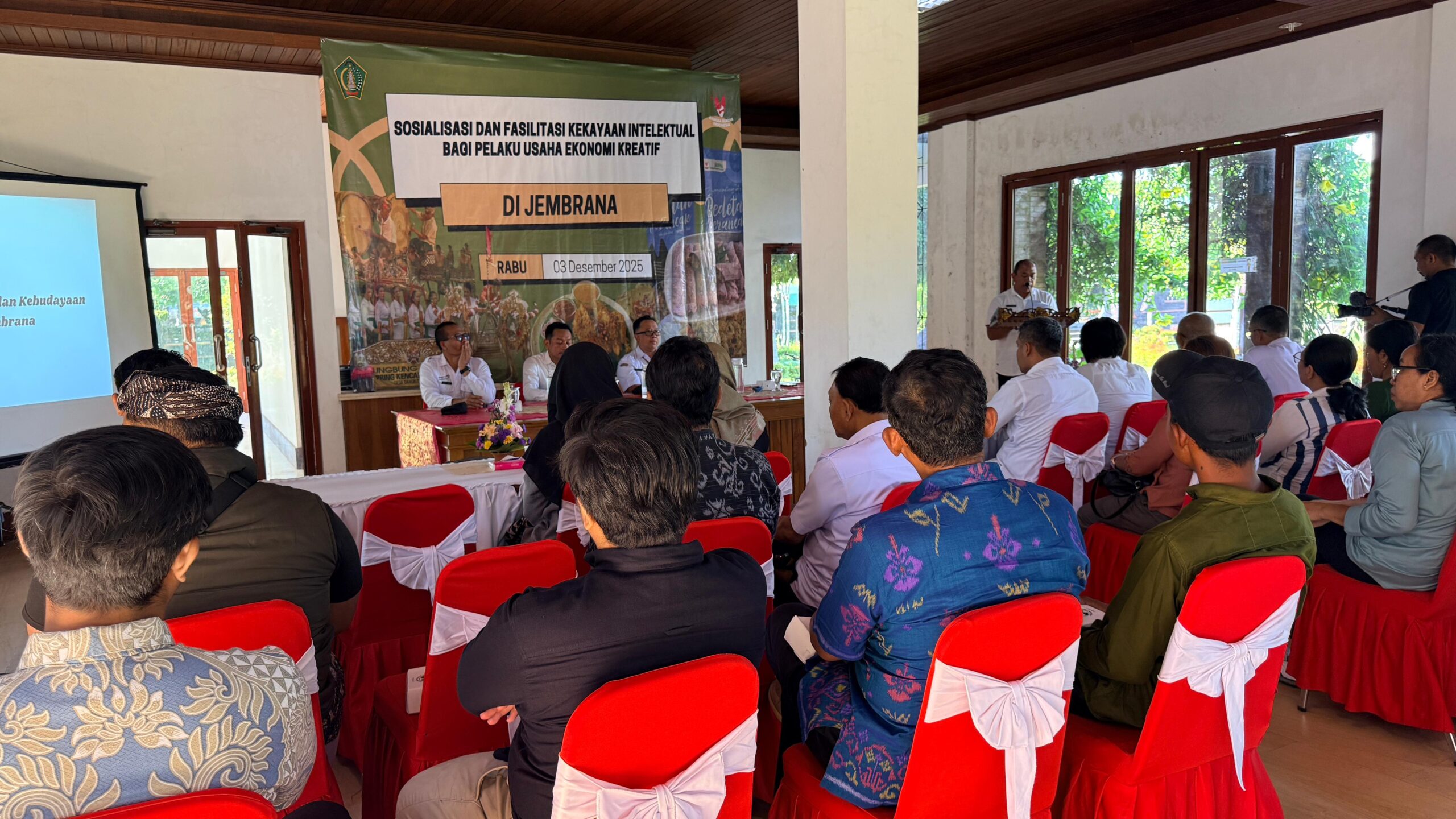 Jembrana – Pemerintah Kabupaten Jembrana melalui Dinas Pariwisata dan Kebudayaan mengundang para pelaku ekonomi kreatif untuk mengikuti kegiatan Sosialisasi dan Fasilitasi Kekayaan Intelektual (KI), yang digelar pada Rabu, (3/12/2025), di Kebun Raya Jagatnatha, Kabupaten Jembrana.