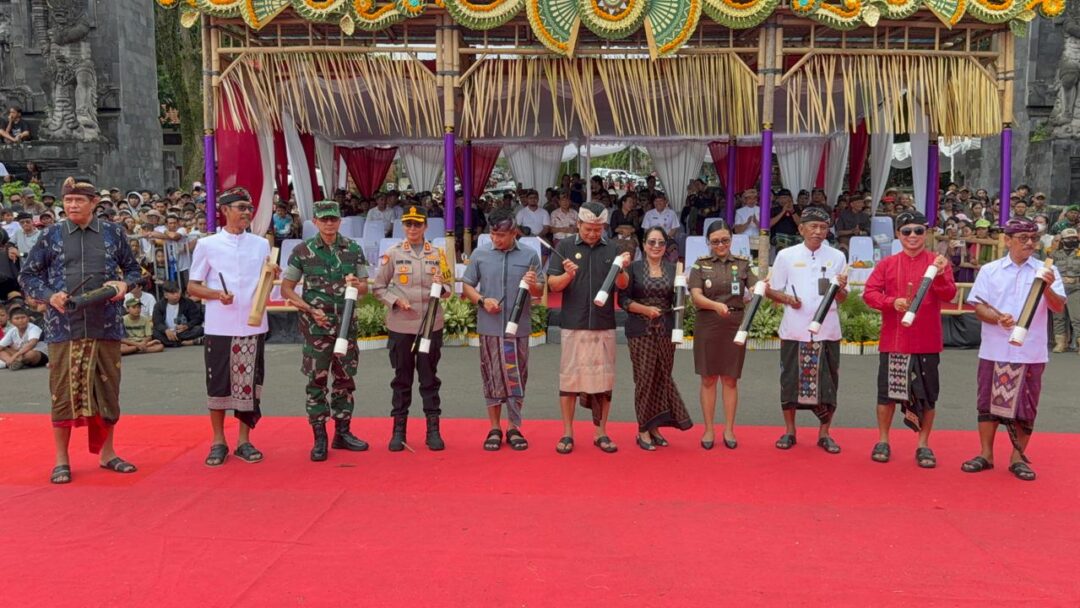 Sebelum acara seremonial dimulai, masyarakat disuguhkan dengan berbagai penampilan seni budaya. Di antaranya tetabuhan Kendang Mebarung yang dimainkan oleh 20 orang penabuh, dan tetabuhan Bungbung Gebyog dengan 14 orang penabuh.