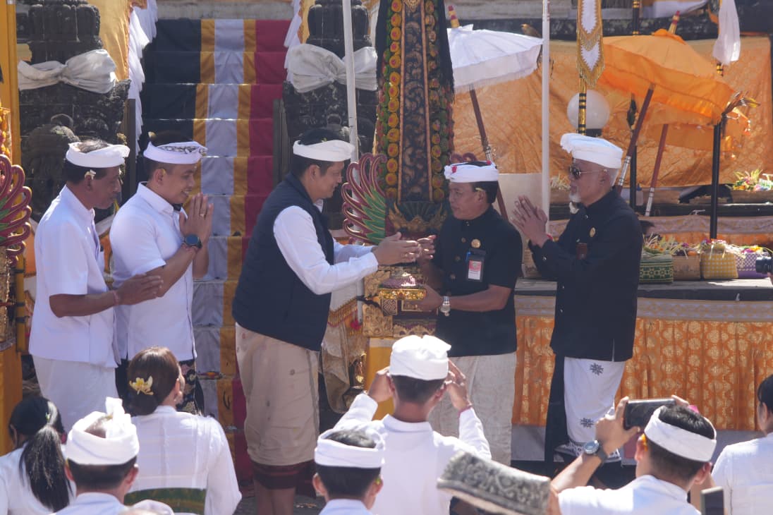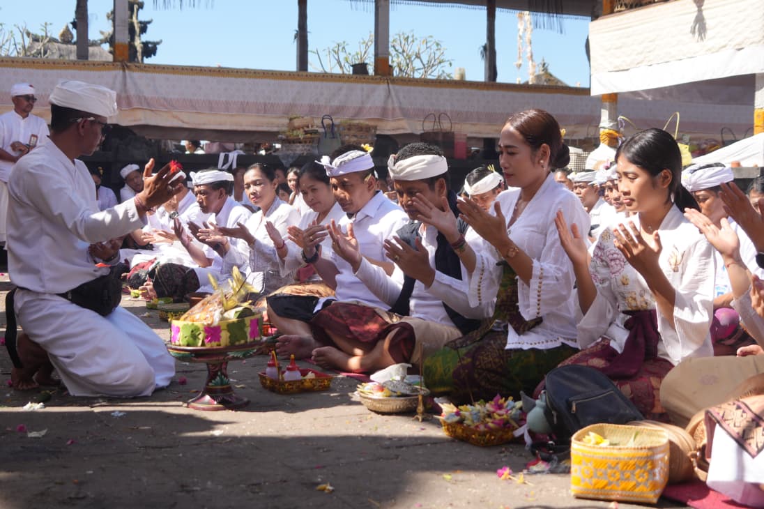 “Bhakti Penganyar ini bukan sekadar kewajiban ritual, melainkan momentum bagi kita semua di pemerintahan untuk menyucikan pikiran dan memohon tuntunan Ida Sang Hyang Widhi Wasa agar program-program pembangunan di Jembrana dapat berjalan lancar demi kesejahteraan rakyat,” ujarnya.
